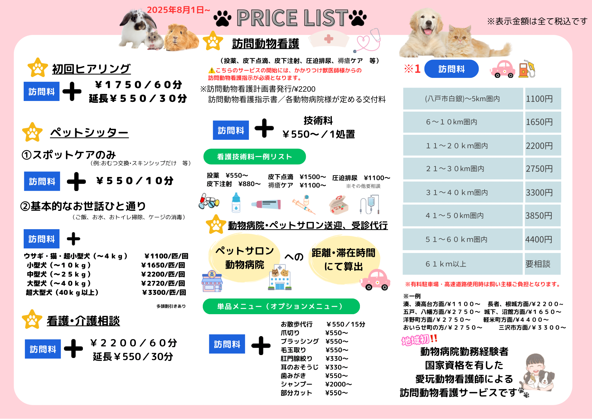 看護計画 看護指導 投薬サポート 各¥550円 |